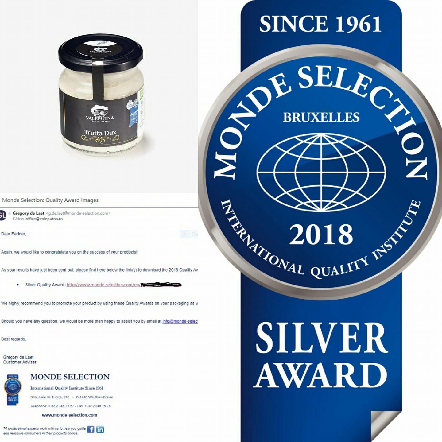 După un proces de evaluare care a durat 4 luni și după testarea senzorială și în laborator, a peste 20 de parametri, de către un juriu format din 70 de chefi din circuitul Ghidului Michelin, produsul Trutta Dux a obținut premiul “ Monde Selection -Silver Award”.